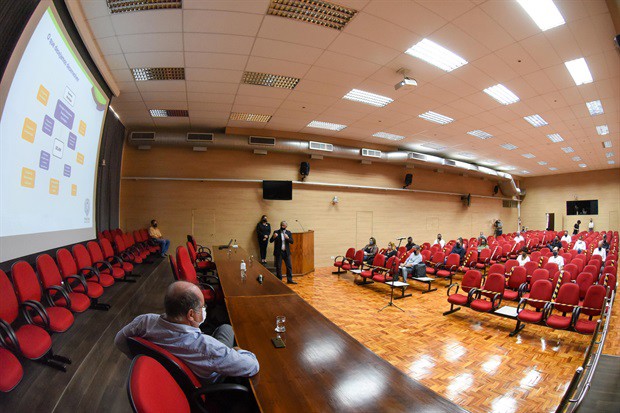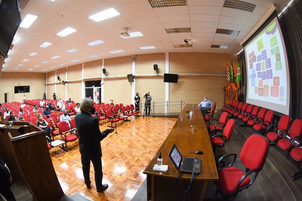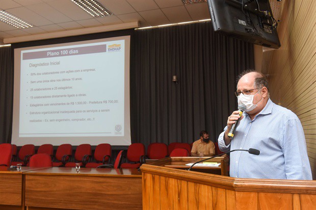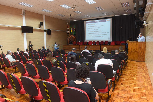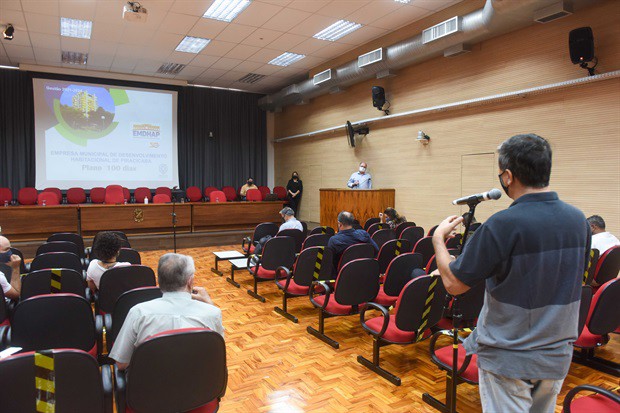 Presentes no salão nobre, Hermes Ferreira Balbino, secretário municipal de Esportes, Lazer e Atividades Motoras, Sérgio Maluf Chaim, presidente da Emdhap (Empresa Municipal de Desenvolvimento Habitacional de Piracicaba), e Sidney Miguel da Silva Nunes, comandante da Guarda Civil Municipal, tiveram 30 minutos cada um para exibir o diagnóstico que fizeram dos órgãos cuja direção assumiram em 1º de janeiro e as soluções que visam garantir os investimentos previstos.