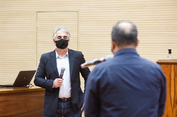Gilmar Rotta (Cidadania) abordou o novo estatuto da corporação, cuja atualização, obrigatória por lei, precisa ser encaminhada pela Guarda ao Legislativo. “É antigo e vários guardas vêm conversando com a Câmara para isso. Existe comissão da Guarda para fazer essa proposta?”, perguntou. “O estatuto é fundamental para o funcionamento da instituição, já temos grupo de trabalho, escolhido por mim, empenhado em ver questões mais frágeis da Guarda. Conto com esta Casa para contratar guardas e mexer na questão da hierarquia interna”, afirmou Sidney, que acrescentou ser “urgente” a contratação de novos guardas, já que a defasagem atualmente chega a 72 agentes. “Precisamos qualificar e equipar a Guarda; o concurso interno é fundamental.”
