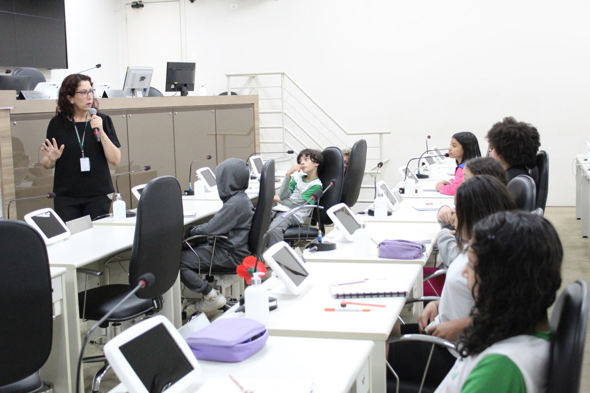 Alunos na faixa etária de 10 a 11 anos participaram da atividade do Conheça o Legislativo na tarde desta quarta-feira (27), no Plenário "Franscisco Antonio Coelho"