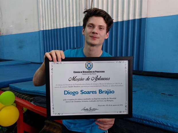 “Diogo é uma das grandes promessas do esporte brasileiro e ganhou destaque após as Olimpíadas da Juventude, em 2018, em Buenos Aires”, relata o vereador, no texto da propositura aprovada pela Câmara. “Na Argentina, ele conquistou a medalha de bronze no individual geral e também uma prata na barra fixa”, destacou.