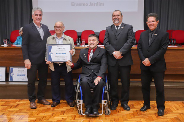 Aos 84 anos, o professor aposentado de educação-física, Erasmo Jardim, também recebeu o “Título de Benemérito da Educação Física”, homenagem do Conselho Regional de Educação Física.