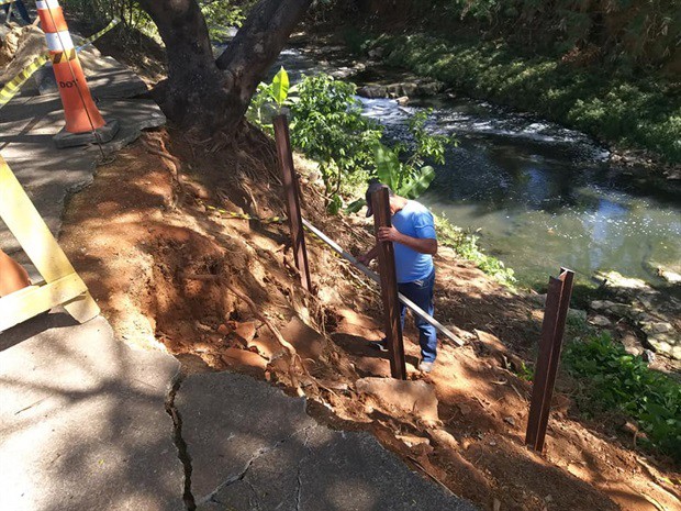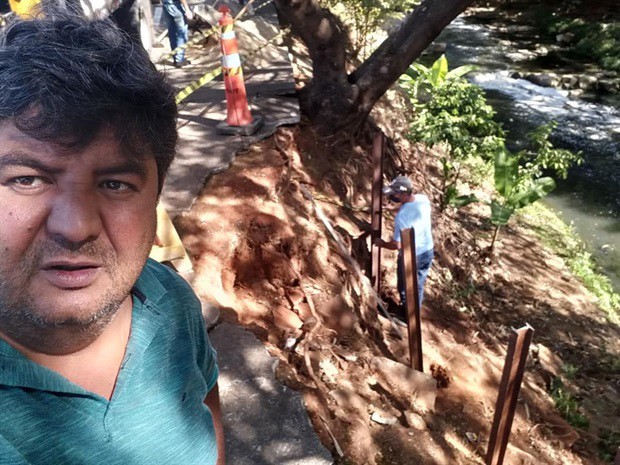 Calçada às margens de córrego recebe manutenção pedida por Wagnão