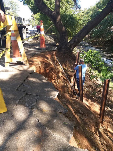 A Secretaria Municipal de Obras realizou o conserto de um trecho de calçada na avenida Abel Francisco Pereira que havia se rompido após o desbarrancamento das margens do córrego do Enxofre.