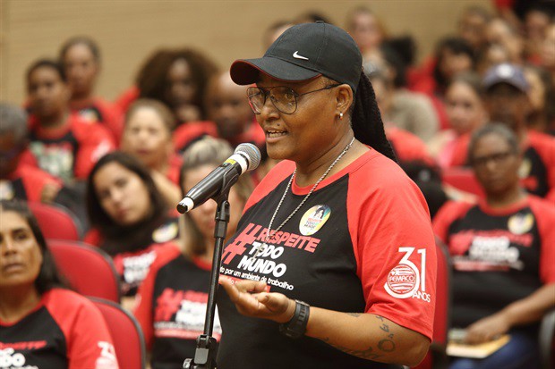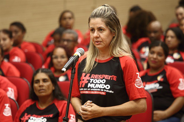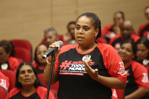 "O respeito não é só para nós, mas para todos. Assédio não é doença, mas adoece. Precisamos deixar de continuar achando que são normais questões que maltratam os outros e dar um basta nisso", disse a presidente do Siemaco, Renata Aguiar Souza, ao apontar que os trabalhadores terceirizados "sofrem mais nesses ambientes porque são 'peças' fáceis de serem trocadas".