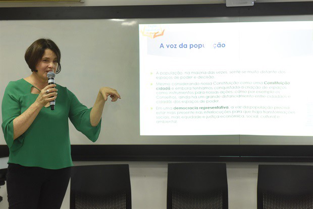 “Fazer política implica em viabilizar valores”, disse Nancy Thame, diretora da Escola do Legislativa, ao destacar a importância do órgão. Ela ressaltou a necessidade de “ocupar os espaços públicos” como um dos papéis fundamentais da Câmara – o que incluem, também, os meios eletrônicos de divulgação. “A gente convida que a população participe cada vez mais da Escola e da política de maneira geral”, defendeu a parlamentar.