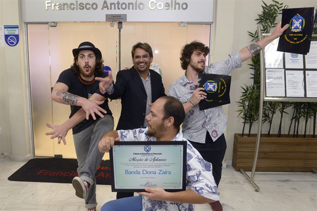 "Gostaria de agradecer a todos da banda, por que pra mim é uma grande honra fazer uma homenagem à banda Dona Zaíra. Vocês tocam um ritmo muito bonito, que traz muita alegria não só ao povo brasileiro, mas ao mundo inteiro", disse o vereador, ao lembrar que além de shows e turnês no Brasil, o grupo tem extenso currículo de apresentações no exterior.