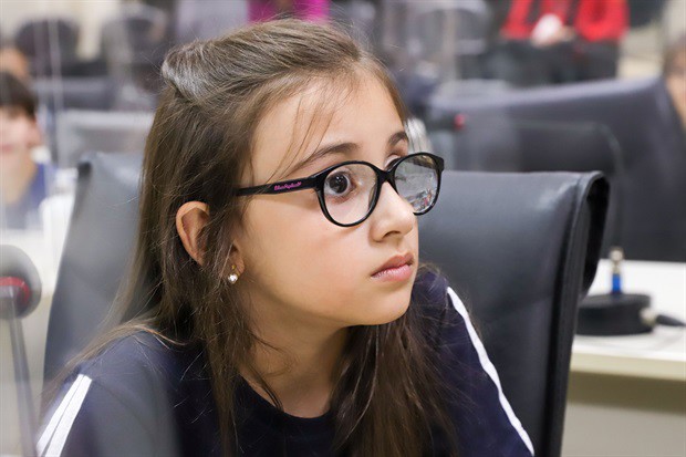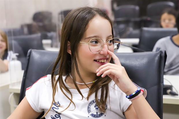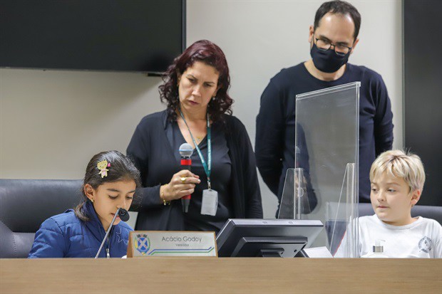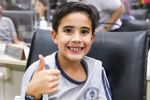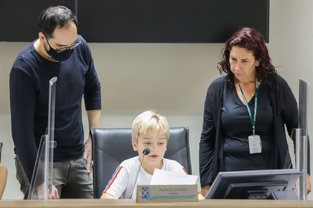 "Gostei muito, pois algumas coisas que aprendemos em sala de aula, como a diferença dos três poderes, eu pude recordar aqui. E também muita coisa que eu não sabia", disse Gustavo Arduh Contarini, de 8 anos, que, na simulação da reunião ordinária, fez o papel do presidente da Câmara.