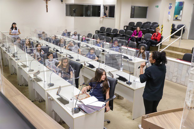 No prédio principal da Casa de Leis, os alunos conheceram o salão nobre, o memorial "Prudente de Moraes" e a galeria de quadros dos ex-presidentes da Câmara. Na sequência, adentraram ao plenário para ocupar as cadeiras da Mesa Diretora e também os lugares dos demais vereadores.