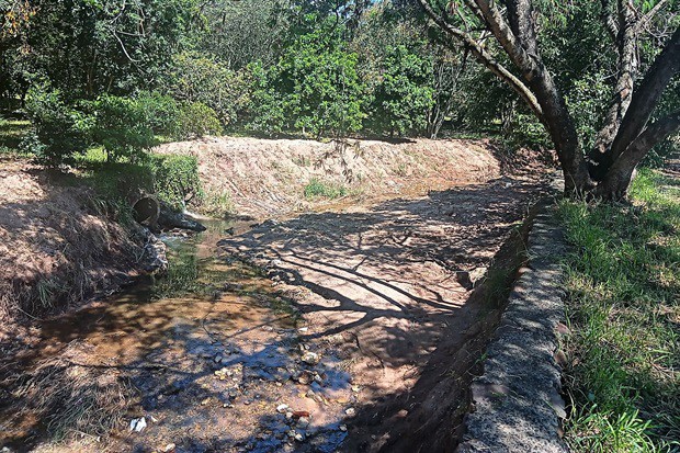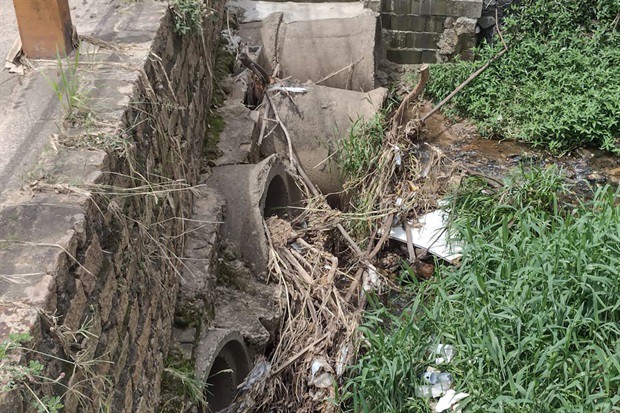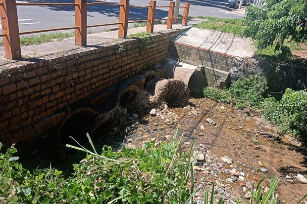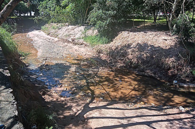 Os moradores relatavam que as recentes chuvas fizeram com que o córrego transbordasse, o que trouxe à tona lixo e galhos que obstruem as manilhas e impedem o escoamento da água.
