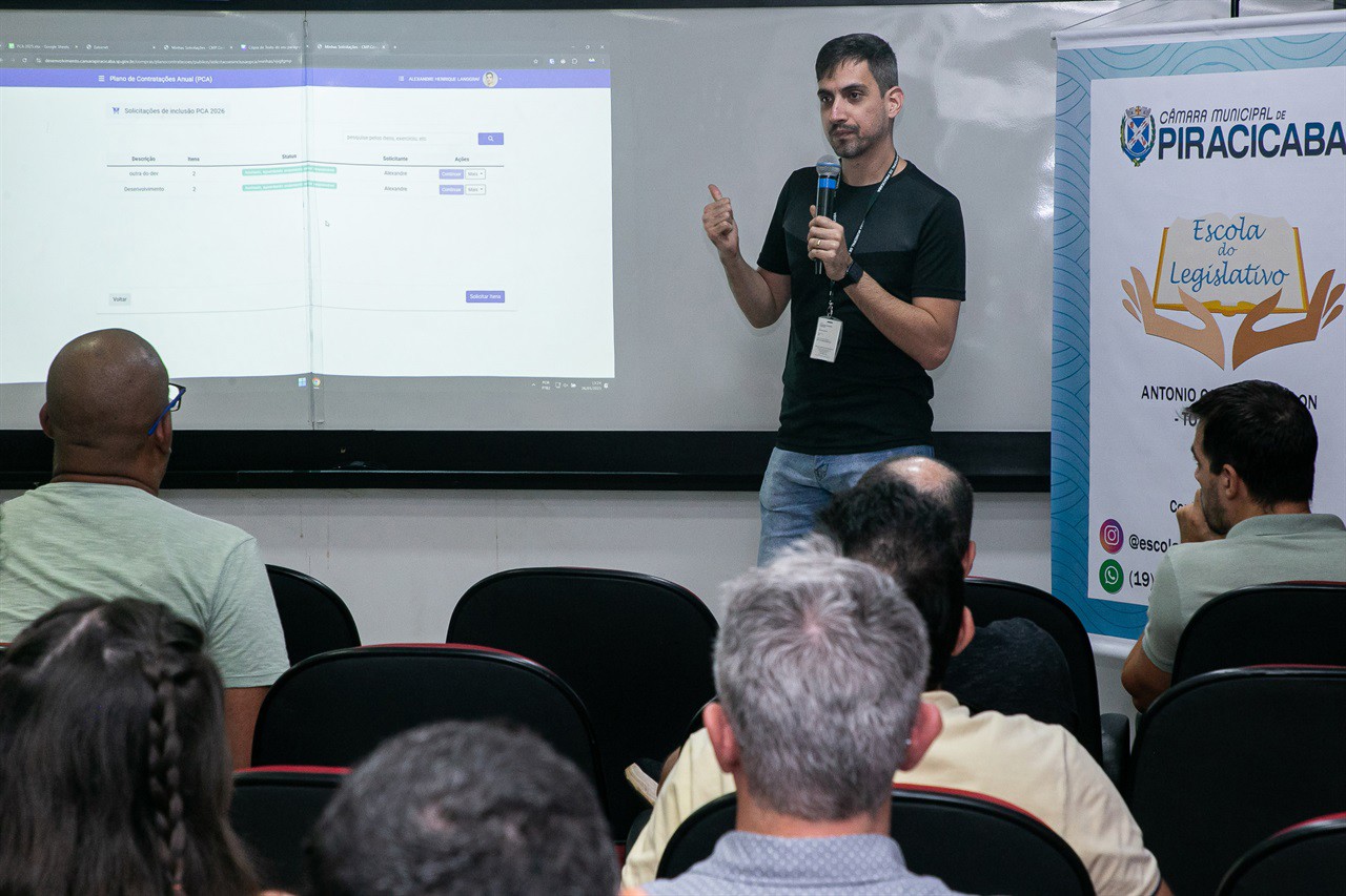 Servidores efetivos e comissionados da Câmara Municipal de Piracicaba receberam qualificação, na tarde desta segunda-feira (26), para que estejam aptos a participar da elaboração do Plano de Contratações Anual (PCA), em conformidade com o que exige a legislação brasileira. O curso foi oferecido em duas oportunidades, sempre na sala de aula da Escola do Legislativo, com a primeira turma tendo recebido a capacitação no último dia 19.