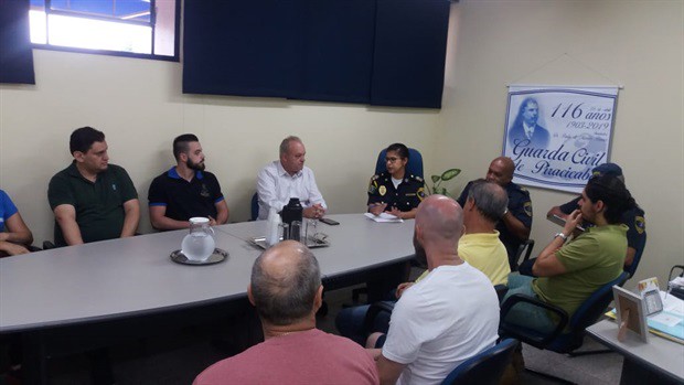 O vereador Gilmar Rotta (MDB) reuniu-se, nesta quinta-feira (7), com a comandante da Guarda Civil Municipal, Lucineide Aparecida Maciel, o inspetor Adauto José de Oliveira, o subinspetor Josué Aguiar, o subcomandante Ronaldo Milani e comerciantes do bairro Paulista.