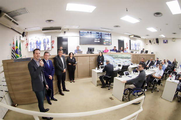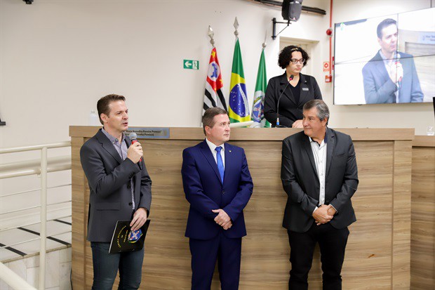 A conquista, pela Escola de Engenharia de Piracicaba, do "Prêmio Angrad – Inovação em Ensino e Aprendizagem 2022" foi saudada pela Câmara com a moção de aplausos 210/2022, proposta pelo vereador Laércio Trevisan Jr. (PL) e entregue a representantes da instituição nesta quinta-feira (6), durante a 34ª Reunião Ordinária.