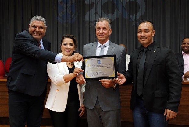 Na entrega do título, na noite desta quarta-feira (22), autoridades destacaram atuação em defesa do Semae (Serviço Municipal de Água e Esgoto).