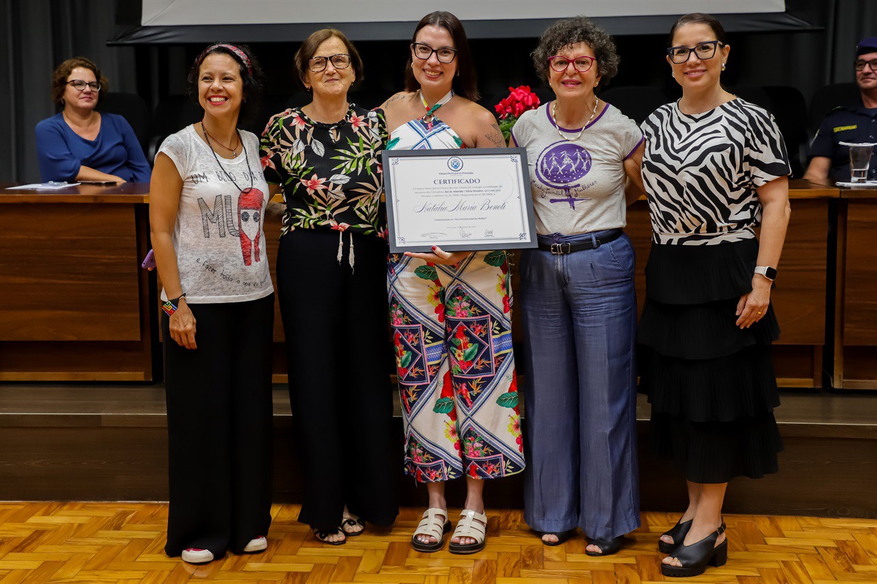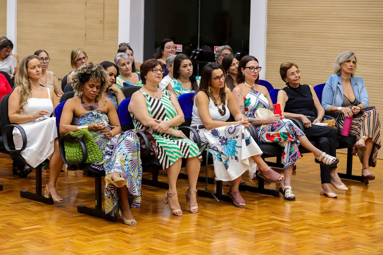 HOMENAGENS - Durante a solenidade, que também teve a presença do vereador Thiago Ribeiro (PRD), cinco mulheres tiveram suas trajetórias enaltecidas por Rai de Almeida e Silvia Morales: Cássia Cristina Tonin Del Tio, Marly Teresinha Pereira, Natalia Puke, Natália Maria Benoti e Márcia Maria Recchia, que usou a palavra em nome das homenageadas. "Somos mulheres que fazem parte de uma história todos os dias, com muita força e coragem. Por isso não podemos perder a alegria e a emoção ao sermos reconhecidas; é um lembrete de que nossa luta vale muito a pena", afirmou.