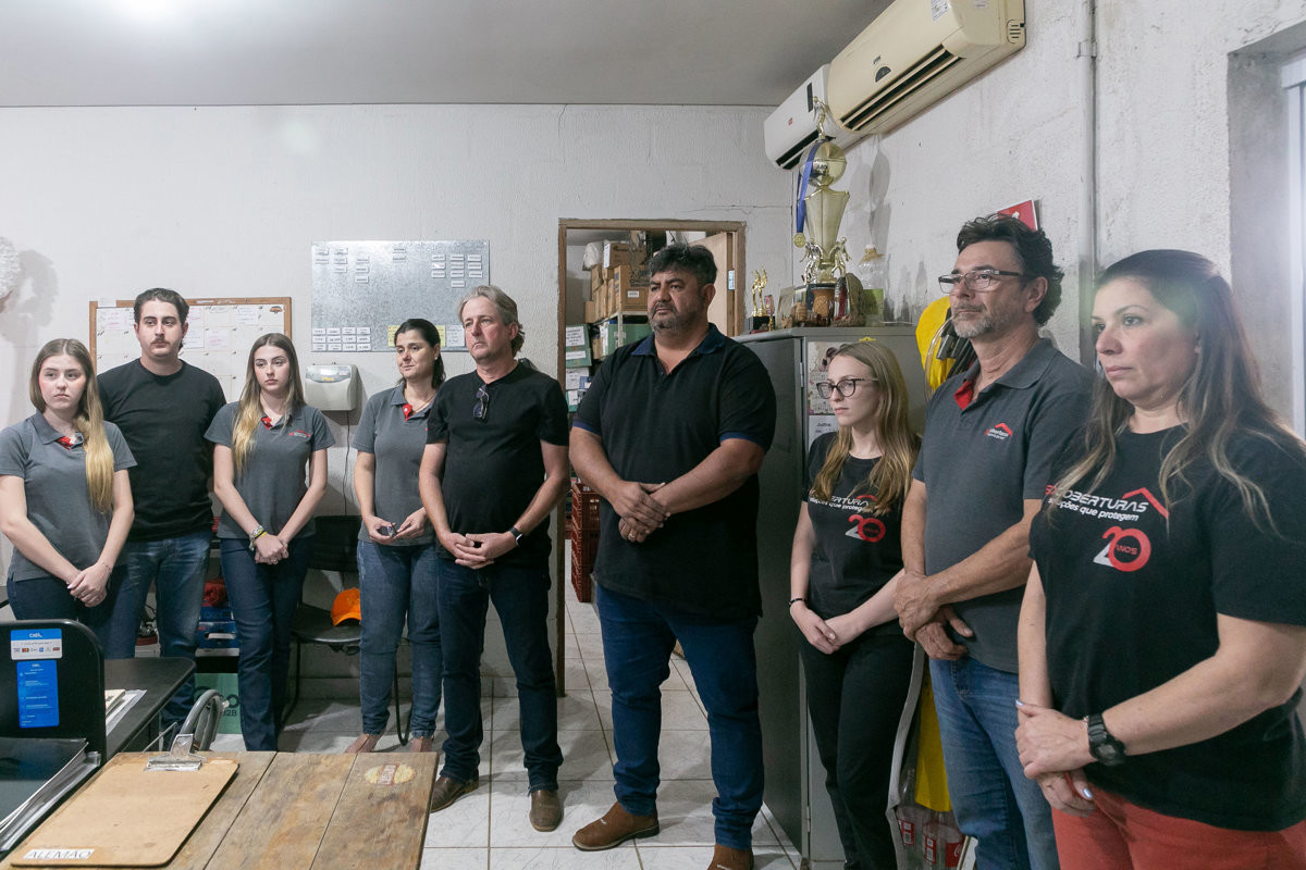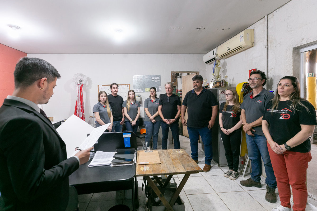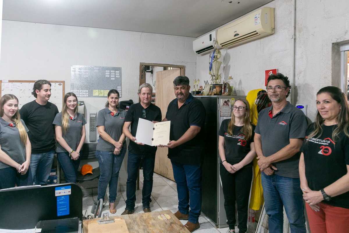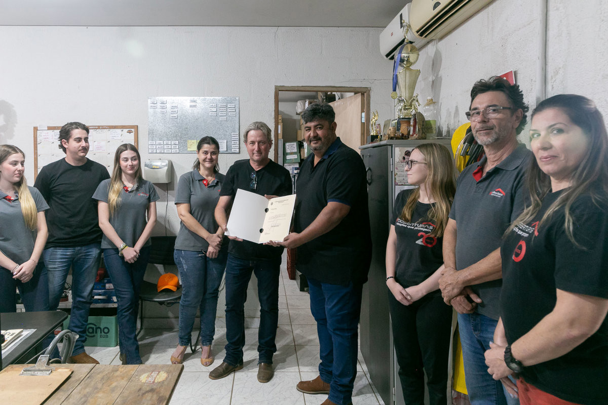 Funcionários acompanharam o ato de entrega, na sede da empresa, na região do Água Branca. Wagnão enalteceu os esforços de Luis Fernando Tonin, que capitaneia os negócios junto com a esposa, Ana Paula Tonin, e o sócio, Reginaldo Matheucci. O vereador ressaltou a resiliência da Só Coberturas, que durante a pandemia buscou outras áreas de atuação em razão da paralisação do setor de eventos na época.