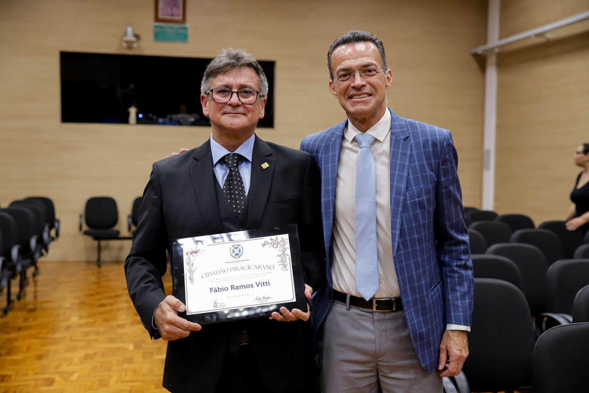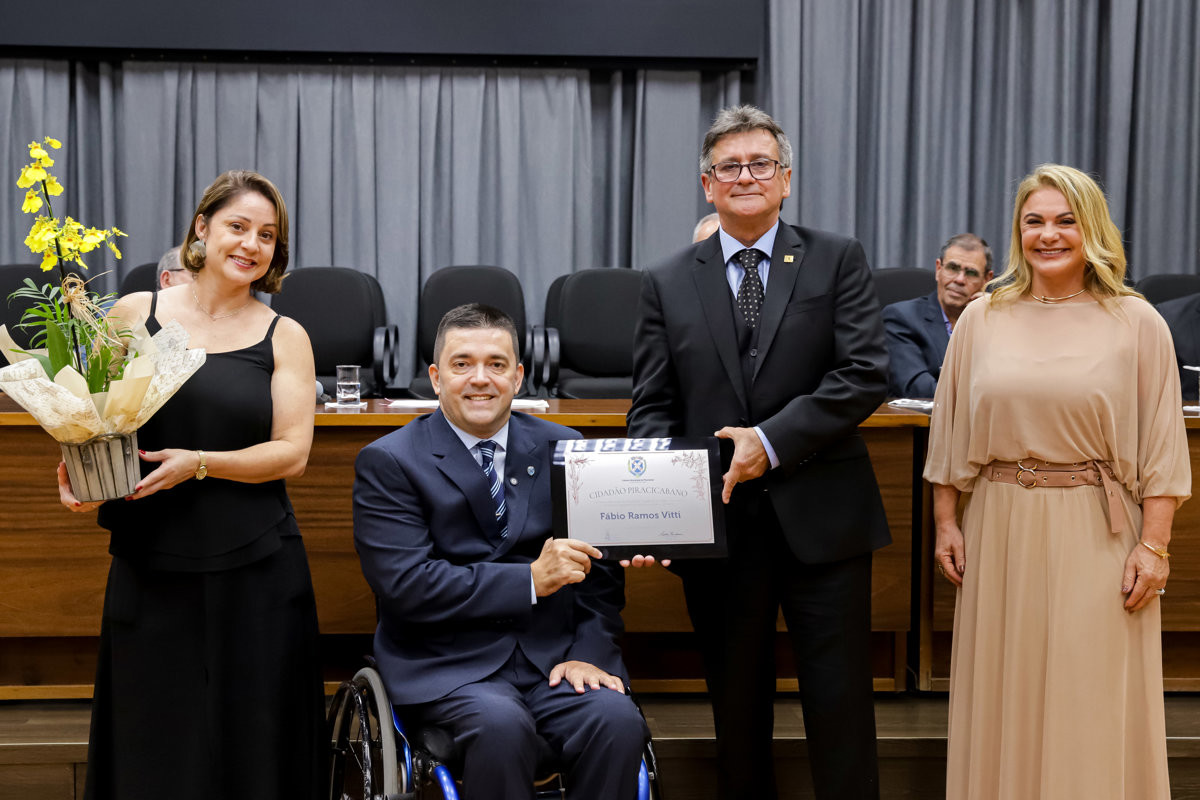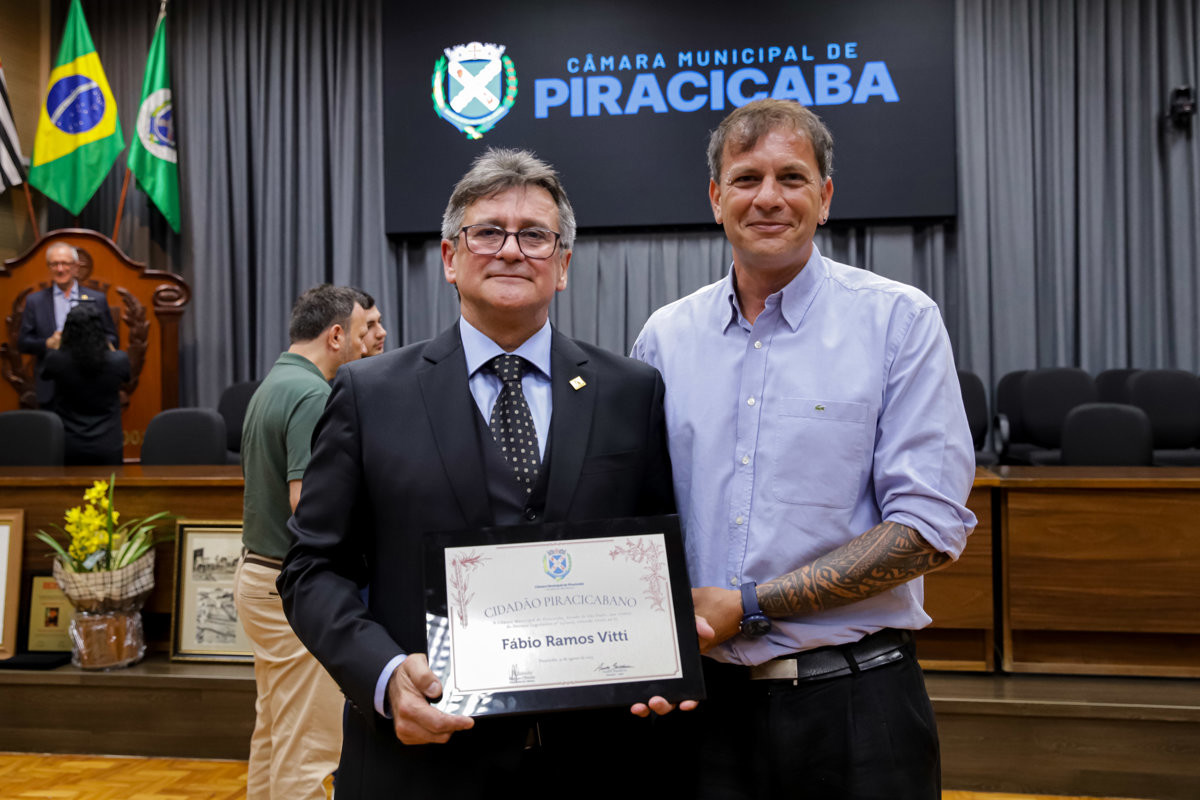 Ao ocupar a tribuna, Fabio Ramos Vitti agradeceu a Deus e aos pais, Antônio Vitti e Maria Tereza Ramos Vitti, que já não estão entre nós, mas “permanecem vivos na memória e em cada valor transmitido”. Ele recordou as lembranças afetivas com Piracicaba, incluindo as viagens ao lado do pai que cantarolava a música da cidade enquanto a mãe, curiosa, pedia para conhecer os encantos da cidade como o Quinze e o Rio Piracicaba.