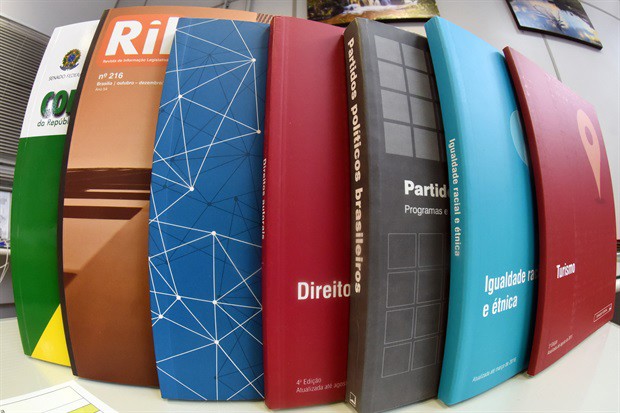 Os títulos são: Código Tributário Nacional, Gestão orçamentária Pública, Governança pública, Licitações & Contratos, Orientações e Jurisprudência do TCU, Licitações e Contratos Administrativos: teoria e jurisprudência, coleção ambiental – Água, Educação Ambiental, Florestas, Patrimônio genético, Resíduos Sólidos e Saneamento Básico e Terras, Assédio, Direitos autorais, Igualdade Racial e Étnica, Turismo, Educação básica, Partidos Políticos Brasileiros: programas e diretrizes doutrinárias, Estatuto do Estrangeiro, Lei de Responsabilidade Fiscal, Revista de Informação Legislativa - RIL - Nº 213--/2017, Revista de Informação Legislativa - RIL - Nº 214 – 2017, Revista de Informação Legislativa – RIL - nº 215 - 2017, Revista de Informação Legislativa – RIL - nº 216 – 2017.