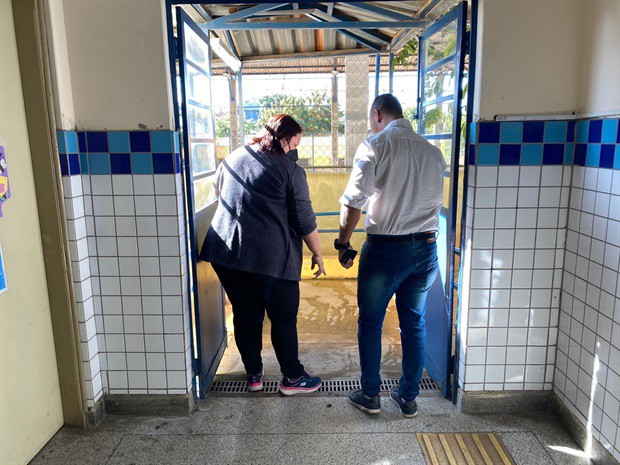 O vereador Ciro Cesar Romualdo, o Ciro da Van (Podemos), esteve na escola na tarde desta terça-feira (14) e, acompanhado da diretora, Andréia de Góis Bertolino, conferiu os pontos que necessitam de manutenção.