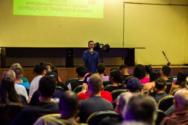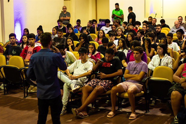 Em palestra, o psicólogo Fabrício Forster falou sobre escolhas e consequências do uso do álcool e de outras drogas e sobre a importância da conscientização e da prevenção, incentivando o público a refletir sobre suas decisões e o impacto delas em suas vidas.