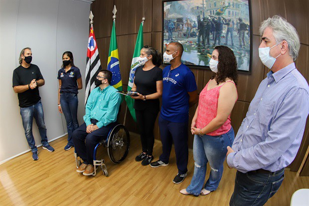 Ela foi homenageada na tarde desta terça-feira (11), no hall da Sala da Presidência da Câmara, com Voto de Congratulações de iniciativa do vereador André Bandeira (PSDB), por meio do requerimento 774/2021, pela conquista de ótimos resultados na ginástica rítmica nas Olímpiadas realizadas no Japão, no ano passado.