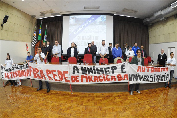 Em um ato à altura da história de 53 anos da Unimep (Universidade Metodista de Piracicaba), cerca de 300 pessoas vieram à Câmara, na tarde desta quinta-feira (17), mostrar apoio à greve iniciada no último dia 8 e manifestar repúdio à Rede Metodista de Educação, grupo mantenedor da escola de ensino superior e do Colégio Piracicabano.