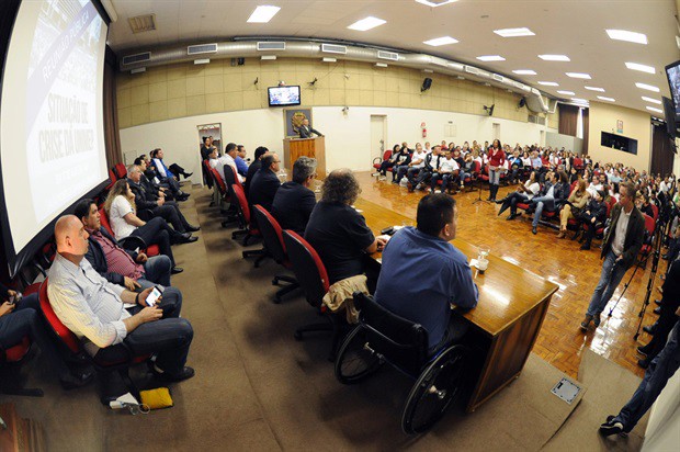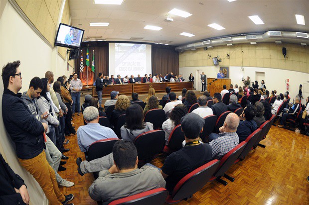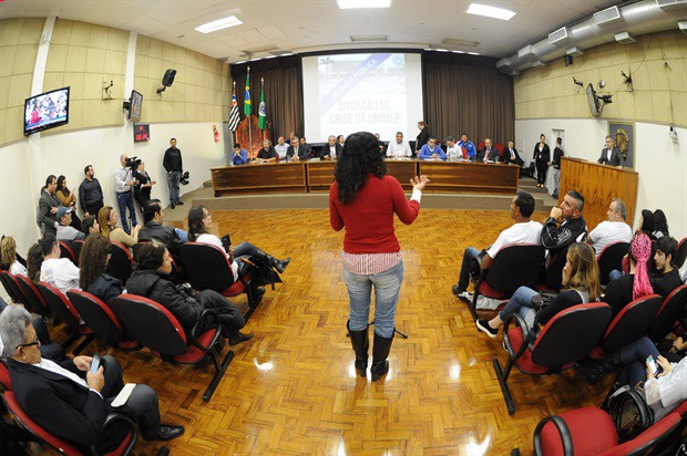 Cerca de 300 pessoas vieram à Câmara protestar contra falta de diálogo do grupo mantenedor da universidade. Ato tem apoio a Márcio de Moraes, reitor destituído.