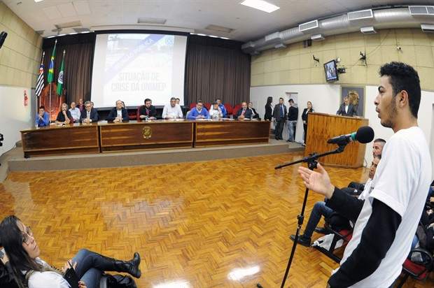 Em quase duas horas e meia, o ato na Câmara abriu espaço para a fala de 18 autoridades e do público presente. Pela Unimep, discursaram o reitor destituído Márcio de Moraes, o presidente do Sindicato dos Professores de Campinas e Região, Carlos Virgilio Borges, o presidente da Adunimep (Associação dos Docentes da Unimep), Milton Schubert, o presidente da Associação dos Funcionários do Instituto Educacional Piracicabano, David Wesley Marques, o diretor da Faculdade de Direito da Unimep, Jarbas Martins Barbosa de Barros, e a representante dos alunos Nathália Navarro.