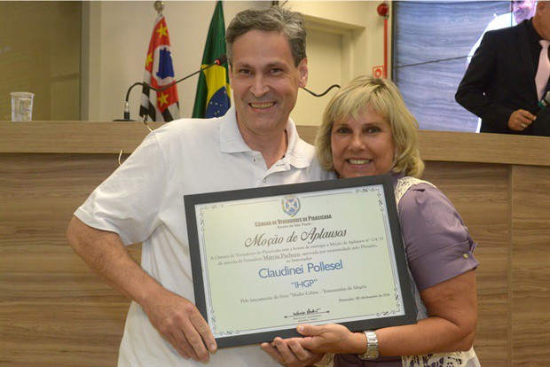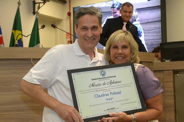 A vereadora Márcia Pacheco (PSDB) homenageou, durante a 2ª reunião ordinária da Câmara de Vereadores de Piracicaba, quinta-feira (4), o historiador Claudinei Pollesel, do IHGP (Instituto Histórico e Geográfico de Piracicaba), pelo lançamento do livro Madre Celina – Testemunha da Alegria, uma biografia da religiosa que, conforme lembra a parlamentar, “fez parte da história de Piracicaba por tantos anos”, disse.