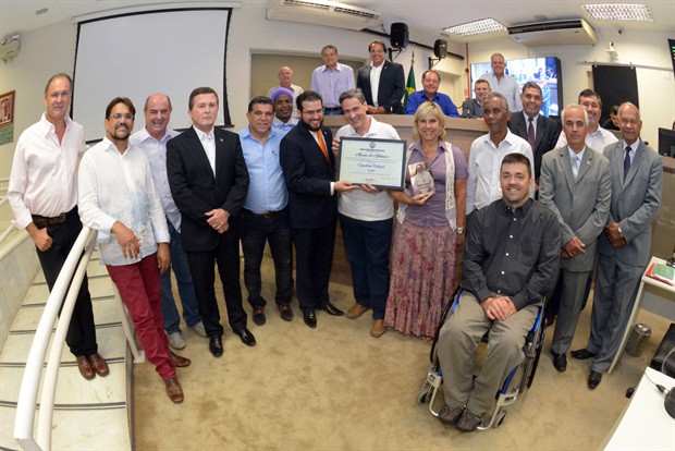Márcia Pacheco entrega moção de aplausos a Claudinei Pollesel