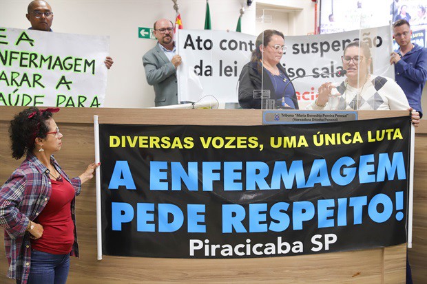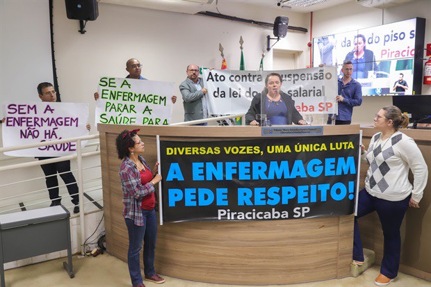 A moção também salienta que a suspensão do piso salarial dos enfermeiros trouxe ainda mais prejuízos para a categoria, “tendo em vista a permanência de um salário ínfimo, que não valoriza a enfermagem que tanto auxiliou a população à época da fatídica pandemia do Covid-19”, destaca “Fala Pira, no texto que foi aprovado pelo Plenário do Legislativo piracicabano.