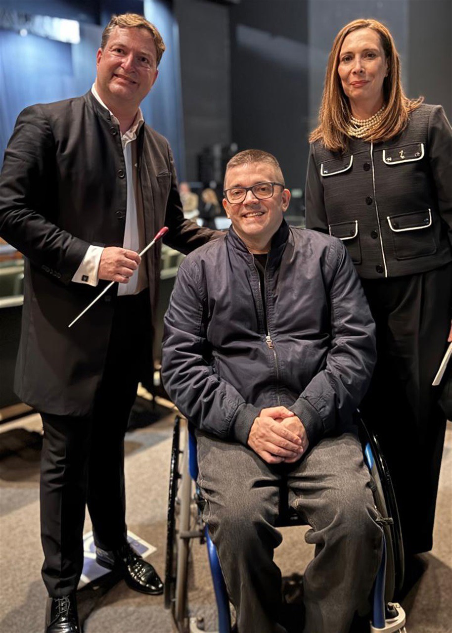 Representando a instituição, a presidente da Associação da OSP, Silvia Costa Szacakcs, recebeu a homenagem, acompanhada do maestro Knut Andreas, diretor artístico e regente titular da orquestra.