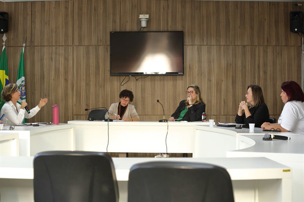 As vereadoras Ana Pavão (PL) e Rai de Almeida (PT), procuradoras respectivamente especial e adjunta, receberam as advogadas Daniela Coimbra, presidente da Comissão da Mulher Advogada da OAB (Ordem dos Advogados do Brasil) de Piracicaba, e Simone Seghese, do Projeto Heroica, e a voluntária Débora Ferraz, coordenadora do Projeto Exército de Formiguinhas e integrante da Pastoral Social da Diocese de Piracicaba.
