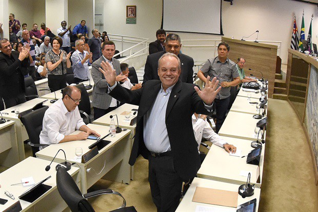 O vereador Gilmar Rotta (MDB) foi eleito dia 15 o novo presidente da Câmara de Vereadores de Piracicaba. Em reunião especial para votação da nova Mesa Diretora, também foram eleitos, por 12 a 11 votos, Pedro Kawai (PSDB), como vice-presidente; Rerlison Rezende (PSDB), 1º-secretário; e Wagner Oliveira (PHS), 2º-secretário. Eles comandarão o Legislativo durante o próximo o biênio 2019-2020. Trabalhos começam regimentalmente dia 1º de janeiro. A Casa reabre dia 7.