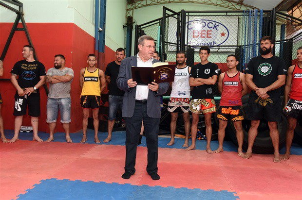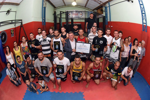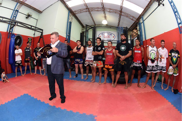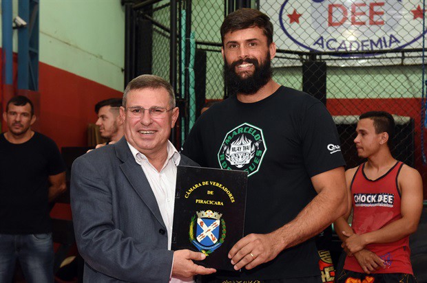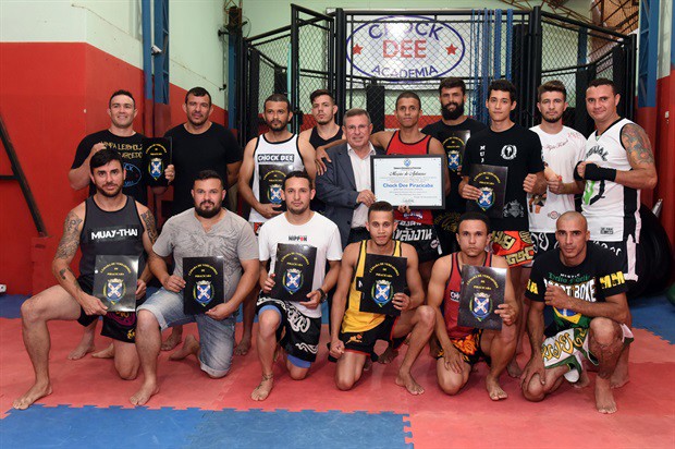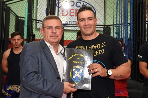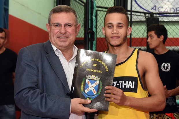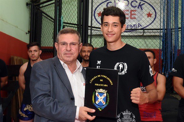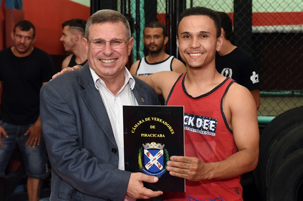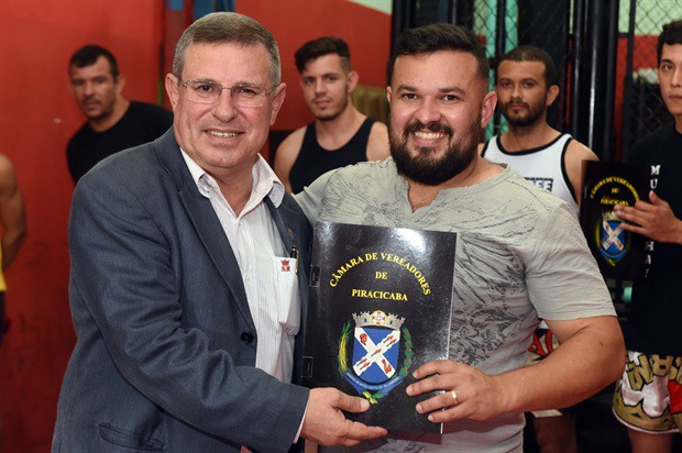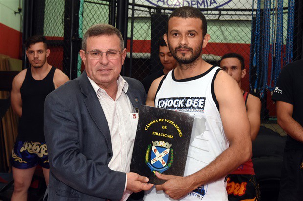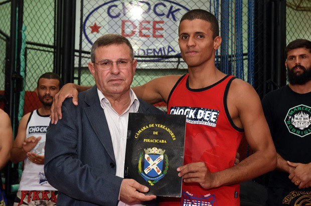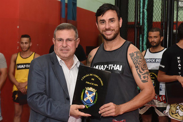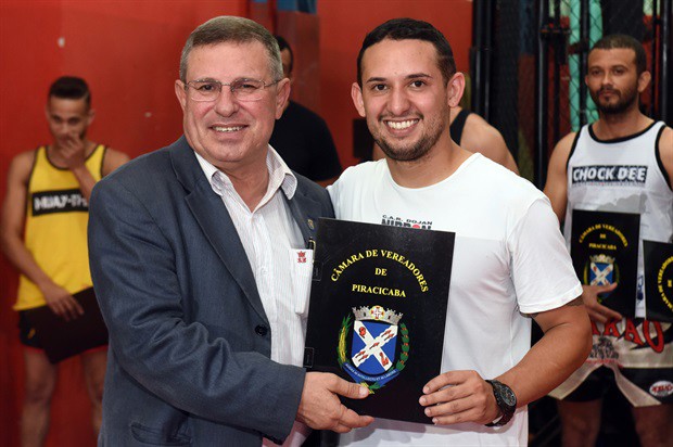 O vereador Pedro Cruz (PSDB) entregou, no início da noite desta terça-feira (6), a moção de aplausos 228/2016, em homenagem a atletas da Chock Dee Piracicaba, por conquistas de relevantes títulos em competições de muay thai, kickboxing e boxe chinês. A solenidade aconteceu na sede da academia e também enalteceu o trabalho, como professor e atleta, do proprietário João Paulo Sacomano Leibholz, o Jampa.