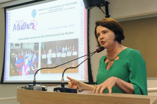 PROCURADORIA ESPECIAL DA MULHER –– A união das vereadoras Nancy Thame e Adriana Cristina Sgrigneiro Nunes, a Coronel Adriana (PSL), em ações voltadas às pautas femininas aconteceu em março de 2018, com a criação da Procuradoria Especial da Mulher, da Câmara de Vereadores de Piracicaba. Seu objetivo é garantir espaço às discussões relativas à promoção da igualdade de gênero, ao empoderamento feminino e à representatividade da mulher na política.