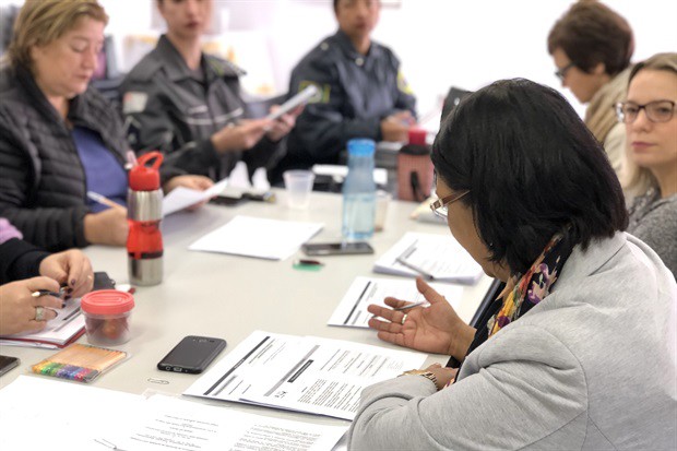 A coordenadora da Patrulha Maria da Penha, Sônia Pateis, apresentou dois fluxogramas da Guarda Civil Municipal: um do recebimento de denúncias do serviço Disque 153 e outro de medidas protetivas enviadas pelo Fórum de Piracicaba. No decorrer da reunião também foi exposto o fluxograma individual do Ministério Público do Estado de São Paulo, pela promotora de Justiça Maria Christina Marton Freitas.