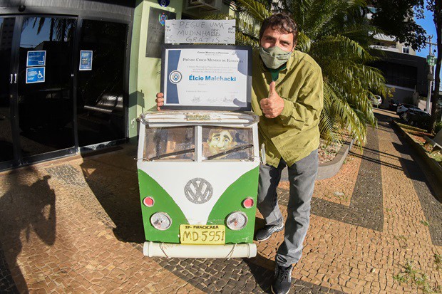 Durante o Simapira 2021, ao longo do mês de junho, Élcio permaneceu estacionado com a sua mini-kombi, uma réplica do veículo em tamanho menor, onde ofereceu mudas de ‘ora pro nobis’ a todos que passaram pela portaria da Câmara com entrada pela Rua do Rosário. “Foi um trabalho muito importante, tanto por ser singelo e tanto pelo significado educativo que tem”, avalia Silvia.