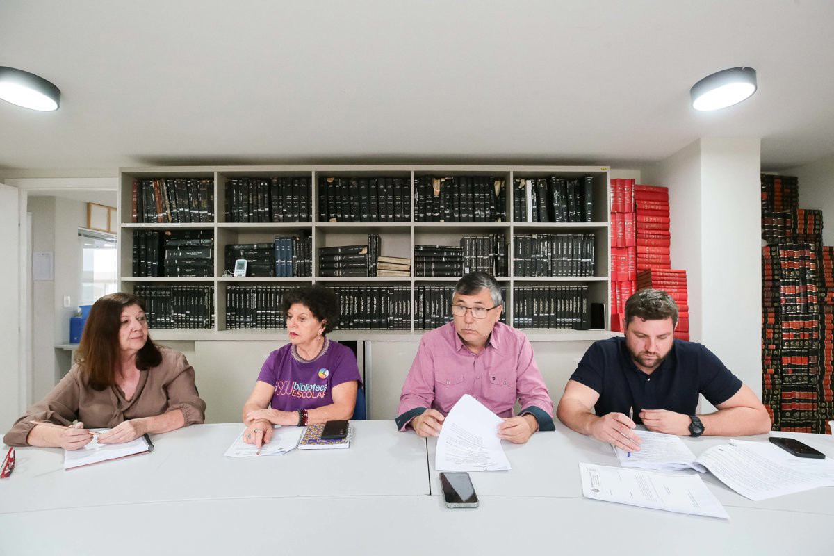 A Secretaria Municipal de Educação esteve representada por cinco servidoras na reunião promovida na tarde desta quinta-feira (30) pela Comissão de Educação, Esportes, Cultura, Ciência e Tecnologia da Câmara, para esclarecimentos sobre o projeto de lei 329/2025, que é de autoria do Executivo e faz três ajustes na lei municipal 5.684/2006.