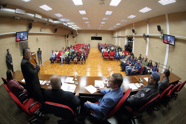 O vereador Trevisan Jr. presidiu os trabalhos da noite. Ele destacou a importância do reconhecimento, da valorização e do serviço exemplar dos profissionais da segurança pública. “Quando lá os dois presídio e centro de detenção provisória está em paz, a cidade está em paz”, afirmou