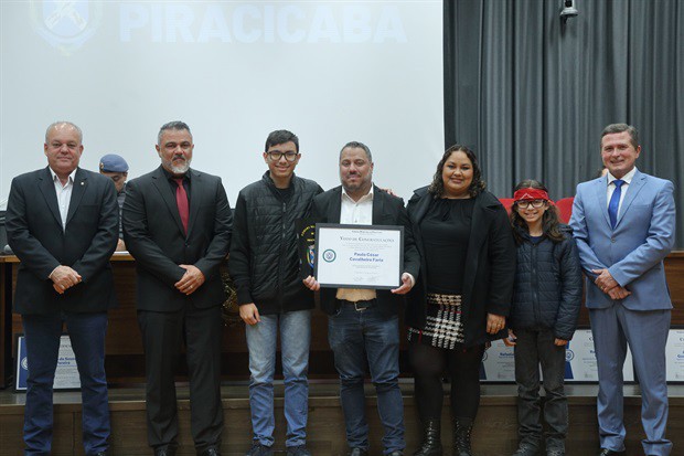 Voto de Congratulações – Durante a reunião solene, Paulo César Cavalheiro Faria foi congratulado pelos relevantes serviços prestados à Penitenciária de Piracicaba.