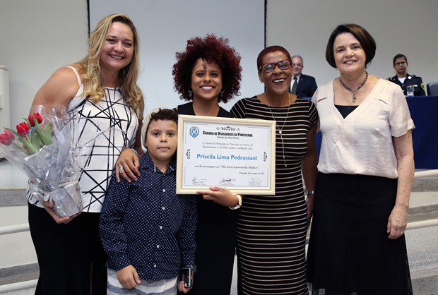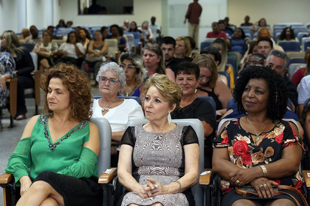 A cerimônia promovida na noite desta sexta-feira pela Câmara atraiu dezenas de pessoas ao auditório da Secretaria Municipal de Educação, já que o salão nobre da Casa, por questões de segurança, passa por reformas. As secretárias municipais de Educação, Angela Jorge Correa, e de Assistência e Desenvolvimento Social, Eliete Nunes, e a presidente do Fundo Social de Solidariedade, Sandra Negri, também prestigiaram a cerimônia.