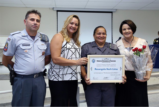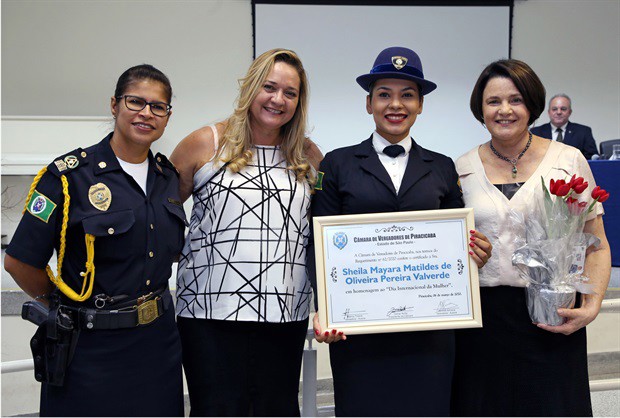 Representando o Executivo, a inspetora Lucineide Aparecida Maciel Correa, comandante da Guarda Civil Municipal, enalteceu a presença de Coronel Adriana e Nancy Thame na Câmara e observou que o mandato de ambas coincide com um período de avanços em Piracicaba das políticas públicas voltadas às mulheres, como a criação da Patrulha Maria da Penha, em 2017, a abertura da Casa Abrigo e o trabalho junto à Secretaria Municipal de Educação com alunos do 5º ano, em que são abordados temas como a violência doméstica.