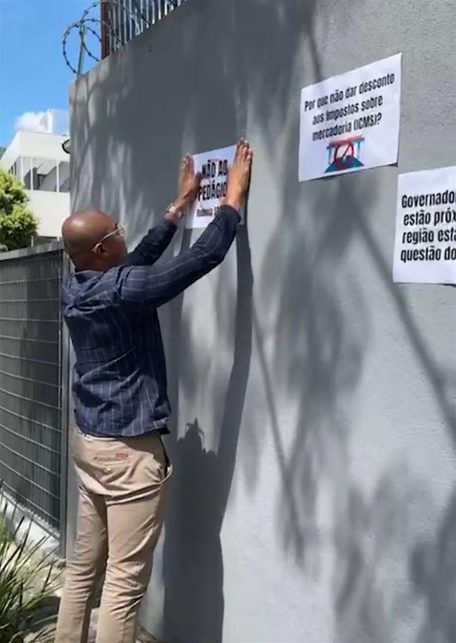 Além do protocolo do documento, o vereador afixou cartazes informativos nas paredes do Palácio dos Bandeirantes "para reforçar a mensagem de que a população não aceita os pedágios". "Esse ato simboliza uma tentativa de pressão sobre o governo estadual para que reconsiderem essa medida, levando em conta o impacto que a cobrança teria no dia a dia dos cidadãos", disse o parlamentar.