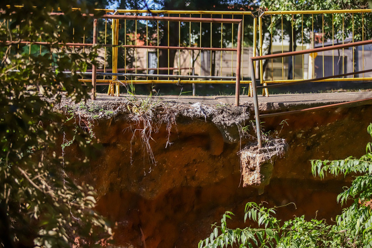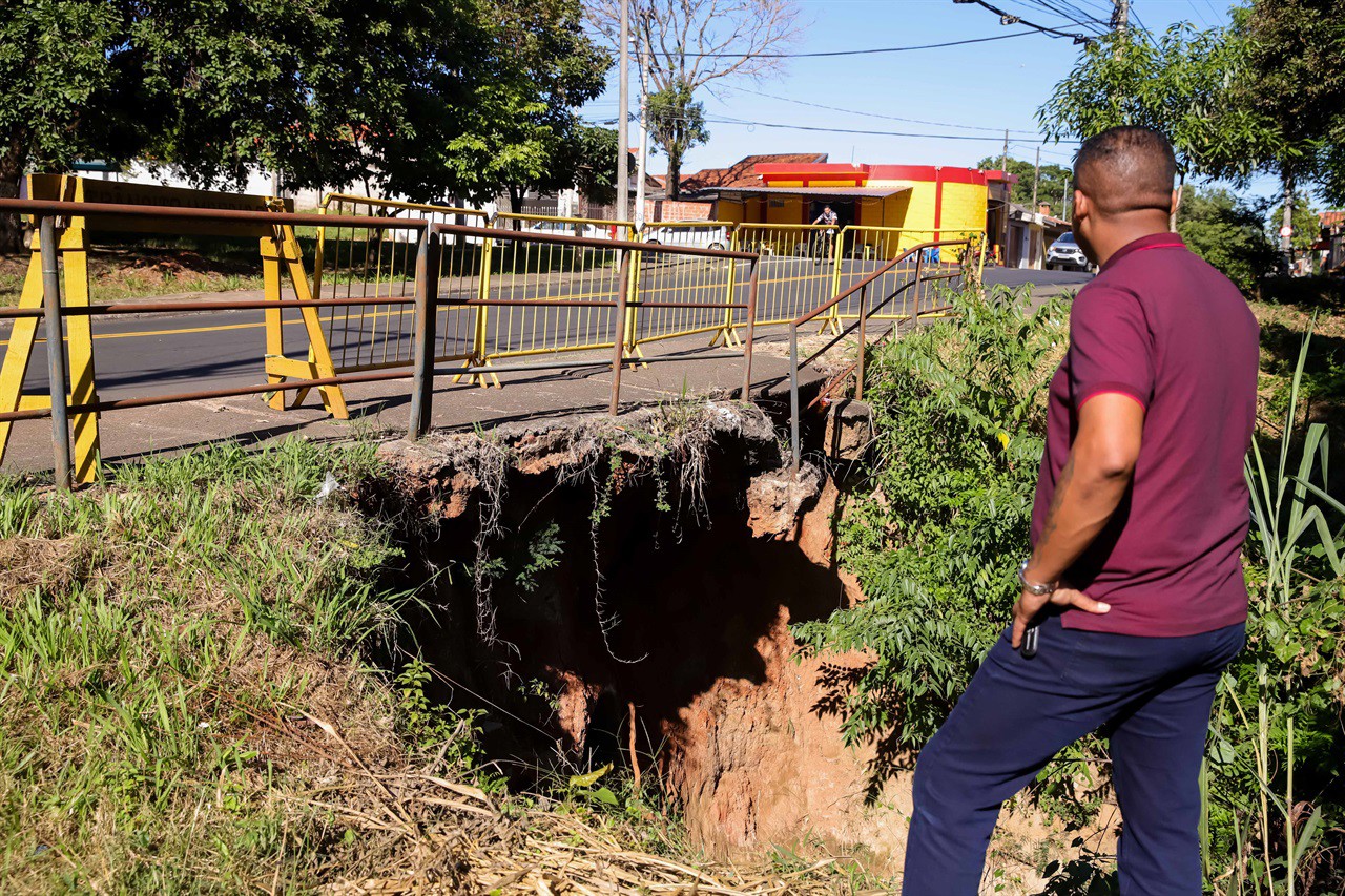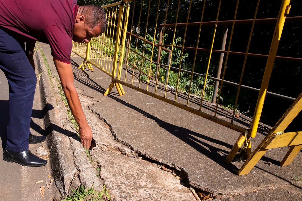 No local, foi constatado que a ponte está cedendo, pois não há mais terra sob a estrutura, e parte do guarda-corpo já caiu — permanecendo pendurada sobre a margem. Apesar da interdição, a calçada continua sendo utilizada por pedestres que circulam diariamente pela região. Além disso, o asfalto, que passou por recapeamento recente, já apresenta trincas nas proximidades da ponte, indicando o avanço do comprometimento estrutural. De acordo com o parlamentar, o solo foi corroído e a estrutura pode ceder a qualquer momento, com risco agravado pela chegada do período de chuvas. “O nome do que está para acontecer aqui é um só: tragédia anunciada”, declarou.