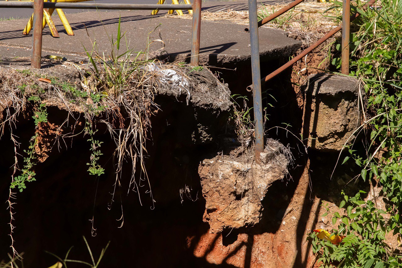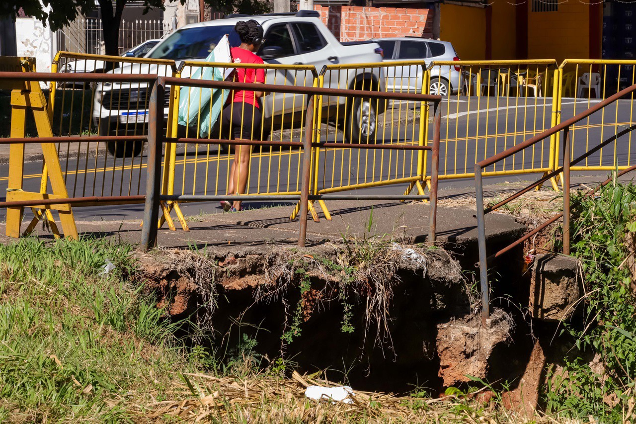 Já o morador Murilo Fernandes completou dizendo que “é caminho, rota de escolas para crianças, mercadinhos, acesso ao bairro Sol Nascente, Alvorada”. Ele alertou que a calçada já está cedendo e que, se nenhuma medida for tomada, o solo e o asfalto também podem ceder, o que pode levar à interdição da via, que é bastante movimentada e utilizada por caminhões pesados.