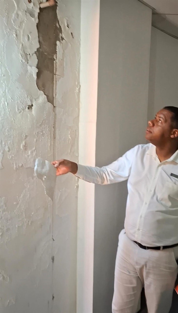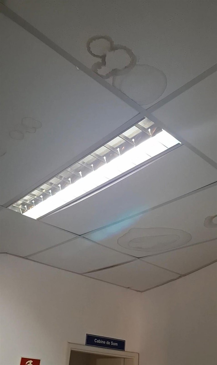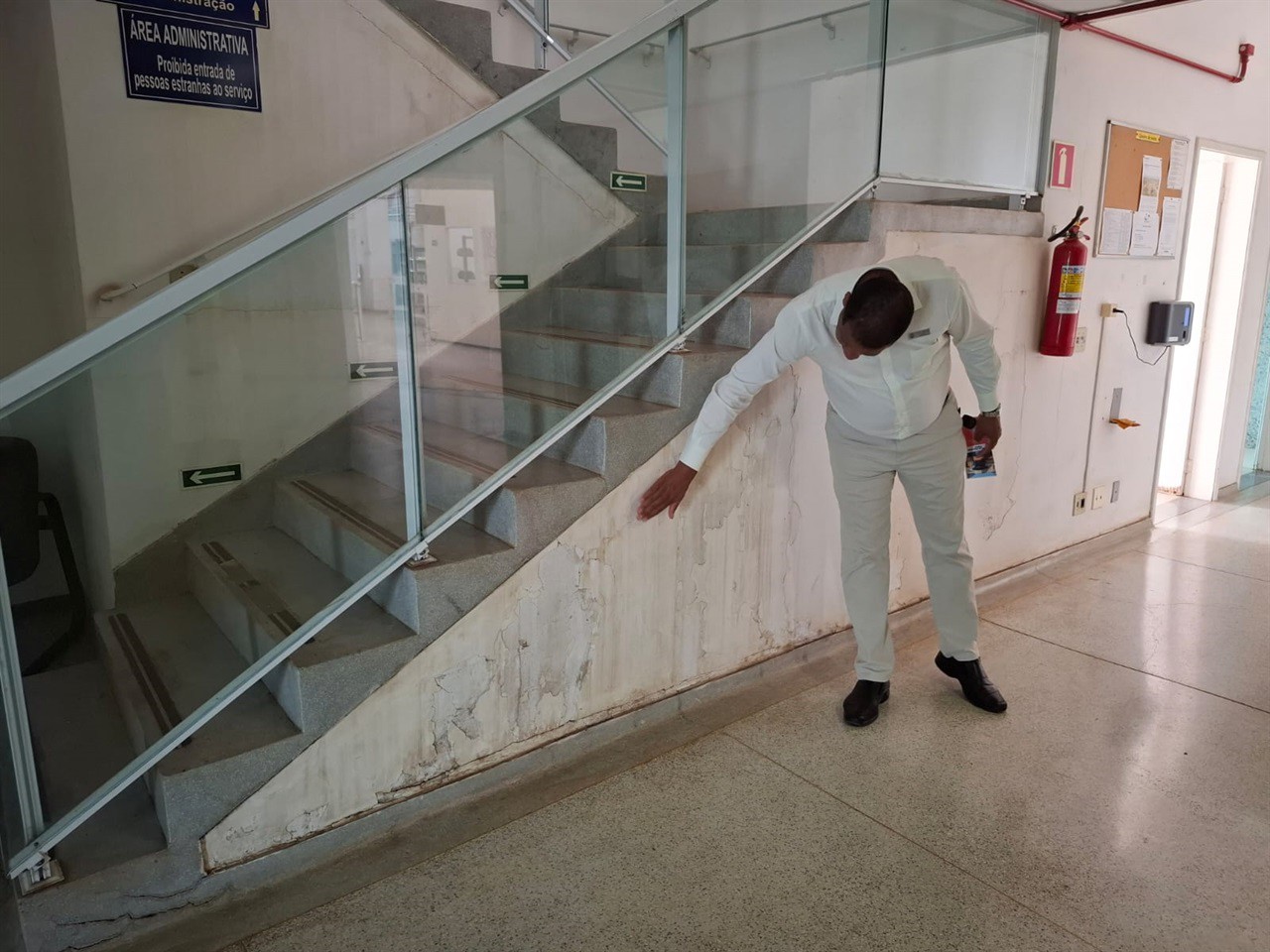 Durante a vistoria, Thiago Ribeiro constatou infiltrações em diferentes pontos do prédio, presença constante de umidade nas paredes e nos forros, banheiros interditados, janelas e vidros quebrados, além da falta de manutenção em estruturas básicas do imóvel. Um dos relatos mais preocupantes envolve a biblioteca infantil: em dias de chuva, a água chega a invadir o ambiente, obrigando os servidores a protegerem as estantes, os livros e os equipamentos eletrônicos com lonas plásticas.