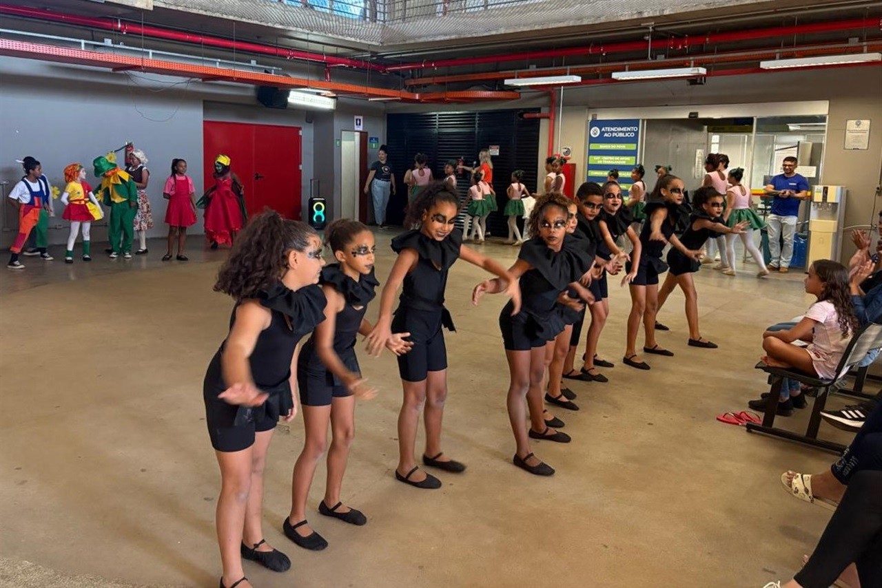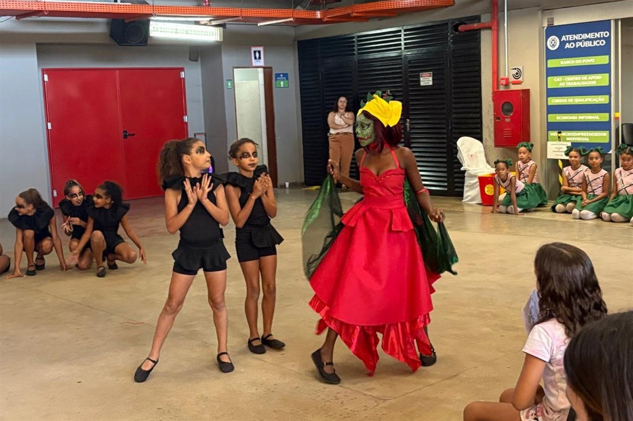 Durante o evento, crianças participantes do Serviço de Convivência e Fortalecimento de Vínculos do programa Vem Viver realizaram apresentações de teatro e dança inspiradas no universo do Sítio do Pica-Pau Amarelo, reforçando o papel da cultura na promoção dos direitos da infância.